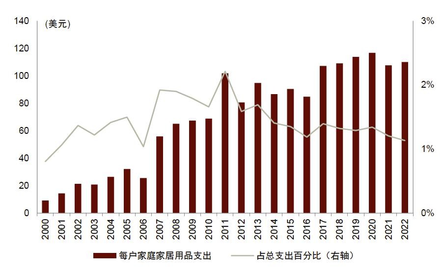 图表16: 2022年美国家居用品在家庭支出中的占比为4%