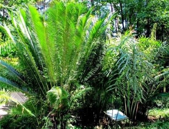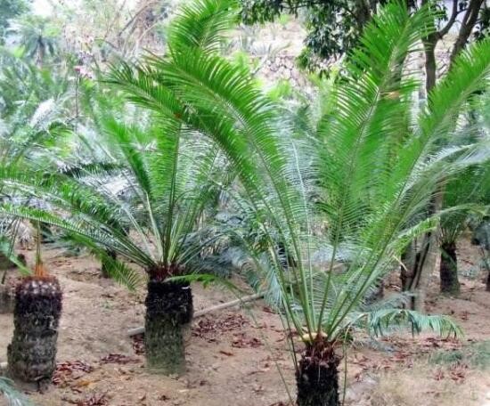 海南苏铁,亦称刺柄苏铁。羽状叶长约1m,小叶疏生,叶形较小。种子干后呈红褐色。 常绿棕榈状木本植物。原产于中国海南岛。性喜高温、高湿、半阴的气候环境,喜富含腐殖质的微酸性土壤。分布于广东、海南岛、万宁及海口等地。