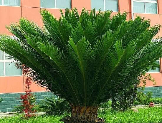 这个品种的铁树在国内是比较常见的,而且观赏性也比较高,不过适合养殖在户外,因为叉叶苏铁植物体型比较庞大,并不适合养殖在家里,大羽叶长2-3米,小裂叶的间距大,可达4厘米左右,小裂叶的长度为20-30厘米,宽则在2-2.5厘米之间,伸出的方向不整齐而成叉状生长