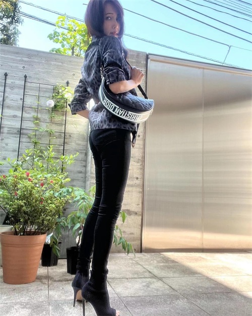 静香向来体形非常骨感,出道几十年就没胖过,这天看起来似乎瘦出了新高度,名副其实的“纸片人”。尽管没有完全露出腰部,但从凹陷的幅度可看出她的名品小蛮腰有多细,像是一只手就能握住的感觉。黑色显瘦更何况还是零赘肉,在紧身裤的包裹下大腿小腿一样细,然而也暴露了腿型不够笔直的唯一短板。腿型不够pose来凑,静香背着Dior迪奥包包高冷摆拍,隔着屏幕都能感受到女神的强大气场。