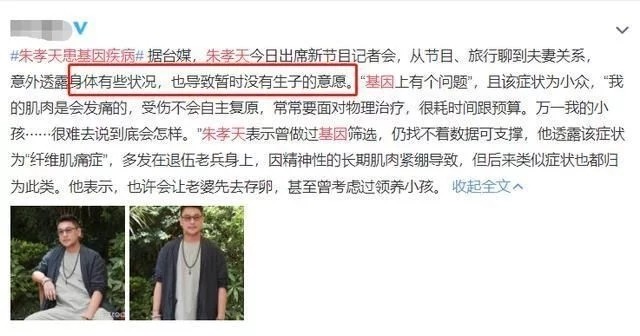 朱孝天现在基本上已经不拍戏,与女友韩雯雯结婚之后,被查出患有基因疾病,肌肉经常会痛,还会影响到下一代,现在正在治疗中。