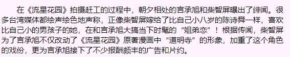 特别是当时言承旭和柴智屏的恋爱绯闻闹得沸沸扬扬,台媒绘声绘色地报道两人的绯闻,表示柴智屏对言承旭疼爱有加,不仅为他改动《流星花园》原著漫画中“道明寺”的形象,更为他接下了不少报酬颇丰的广告和片约。