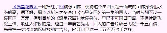 还是新人的F4,每人片酬则是一万台币。