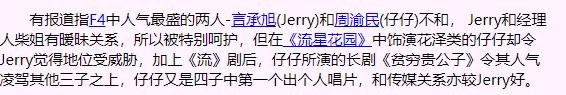 当时因为柴智屏经纪公司对F4的“抽佣”比例问题,F4对柴智屏已经有成见,而有传言她唯独对言承旭抽成少,联系到两人的绯闻,多少让其他三人心有不满。