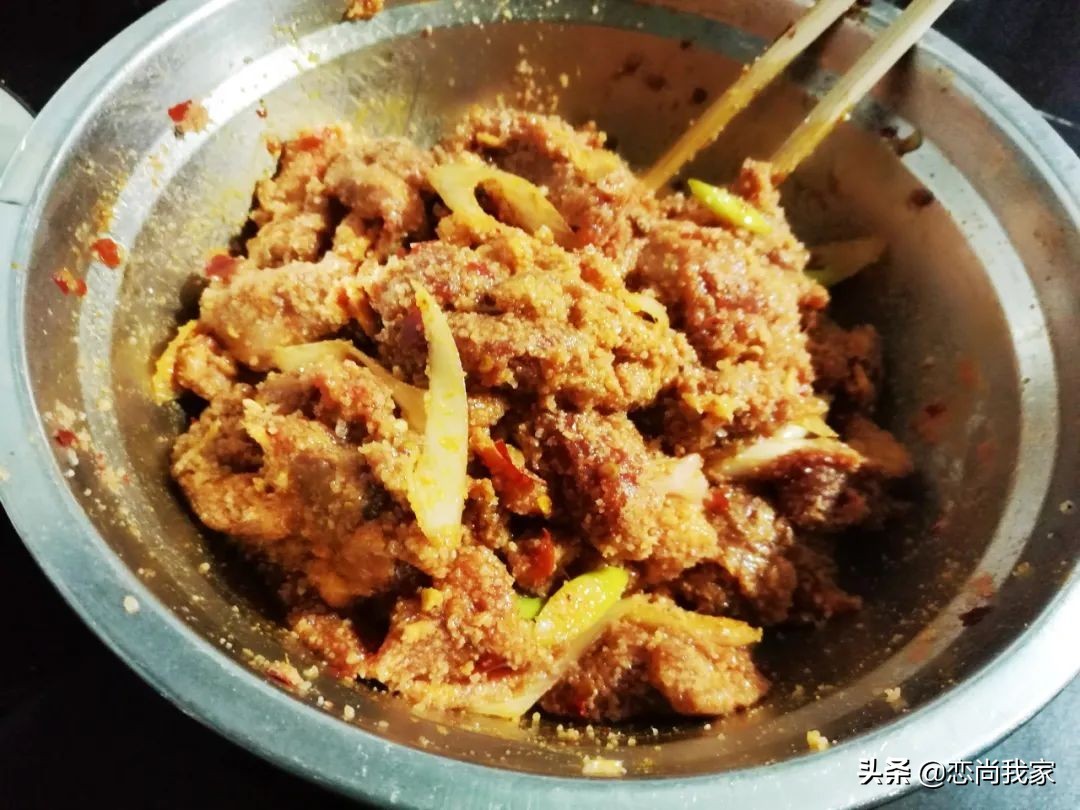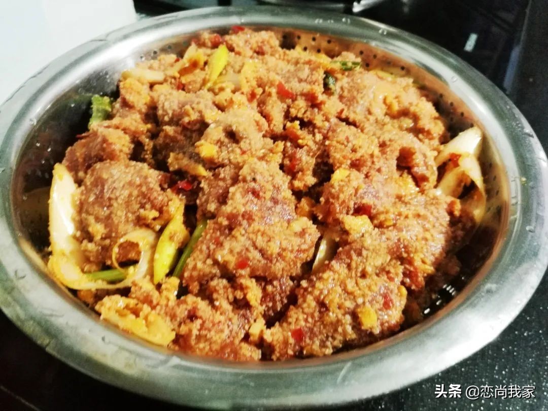 粉蒸羊肉是特别实惠的一道硬菜,家里人多的话,蒸上一大盘管够,肉麻辣鲜香,软糯好吃,配上冬天的根类菜红薯、土豆、芋头、山药等垫底,营养十足。