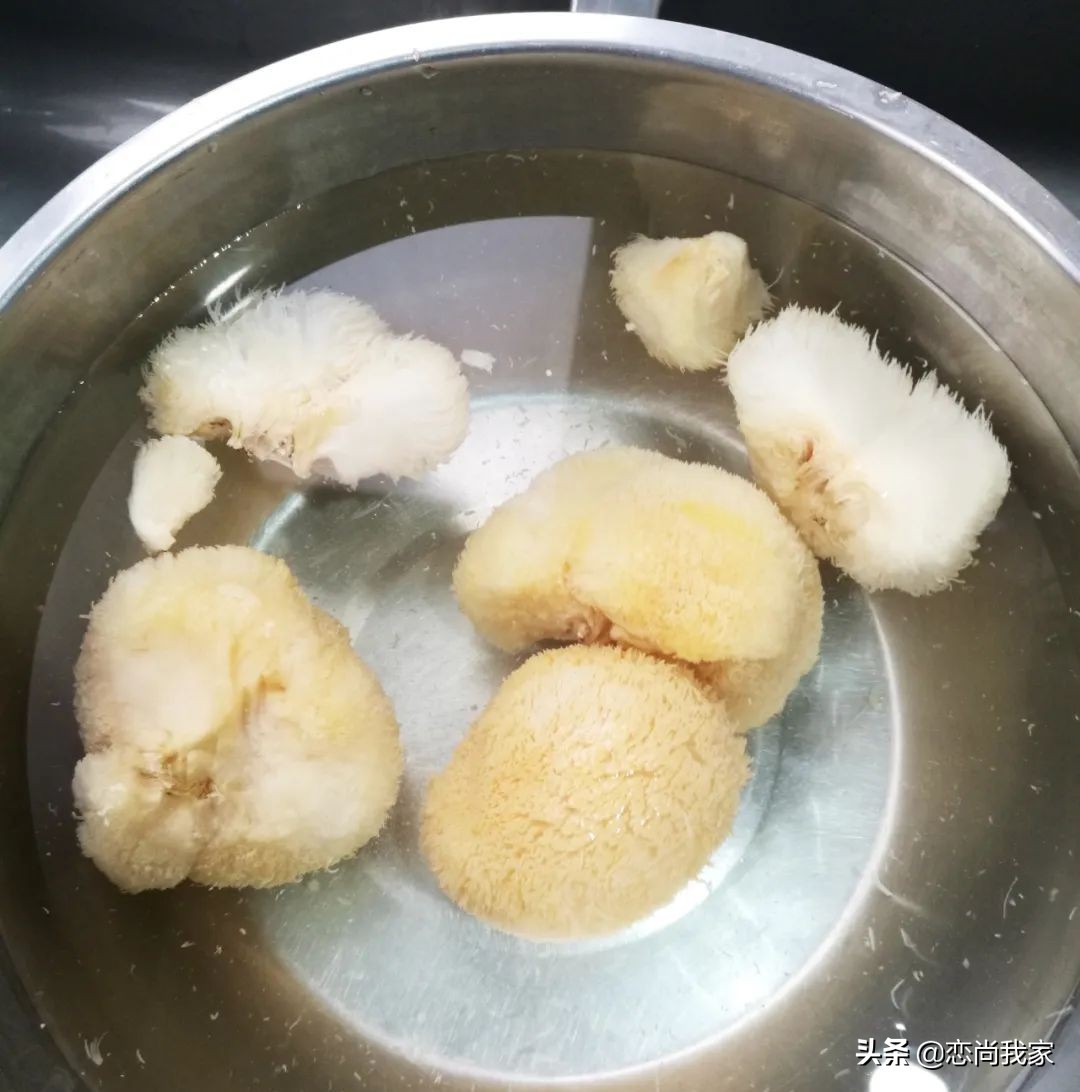 1、干的猴头菇用温水泡5~6个小时。建议用新鲜的猴头菇炖肉,口感更好。干的猴头菇先用温水泡发后,挤干掉黄色水分,再用水泡发,再挤,反复多次,直到水变清为止,这步很关键,洗不干净,炖出来的汤就发苦,颜色和口感会很差。洗干净后,剪掉蒂的部分,撕成小朵备用。