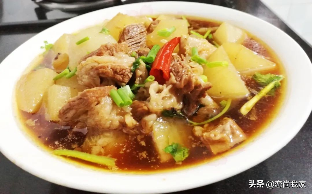 俗话说,冬吃萝卜,夏吃姜, 不用医生开药方。所以白萝卜冬天吃清肠道积热,降气消滞,促进消化。特别是冬天和牛肉、羊肉等热性食物一起搭配做菜是恰到好处。这道白萝卜红烧牛肉,萝卜特别入味,牛肉软烂,最是下饭。