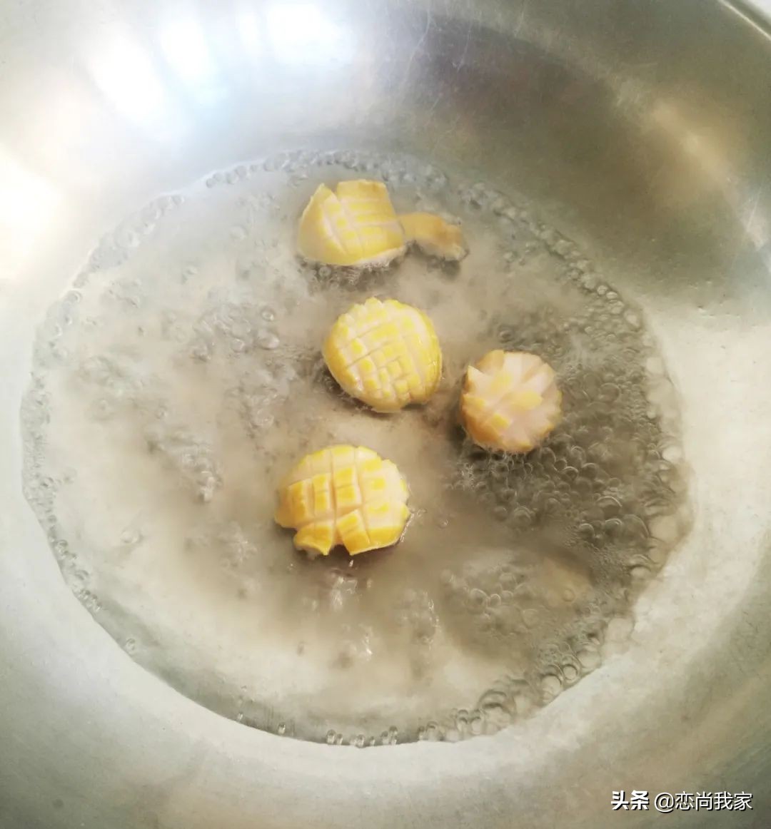 2、把鲍鱼肉有吸盘的一面上切十字花刀,切过三分之二处即可。再把鲍鱼焯一下水,焯水时,水开放鲍鱼烫一下就捞出。