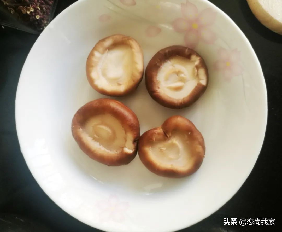 3、香菇去掉蒂,摆放在盘中,把鲍鱼肉放在香菇上。