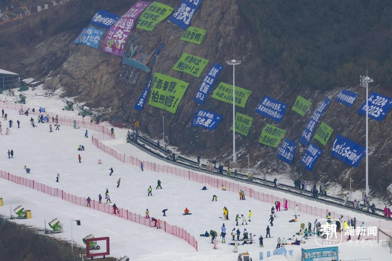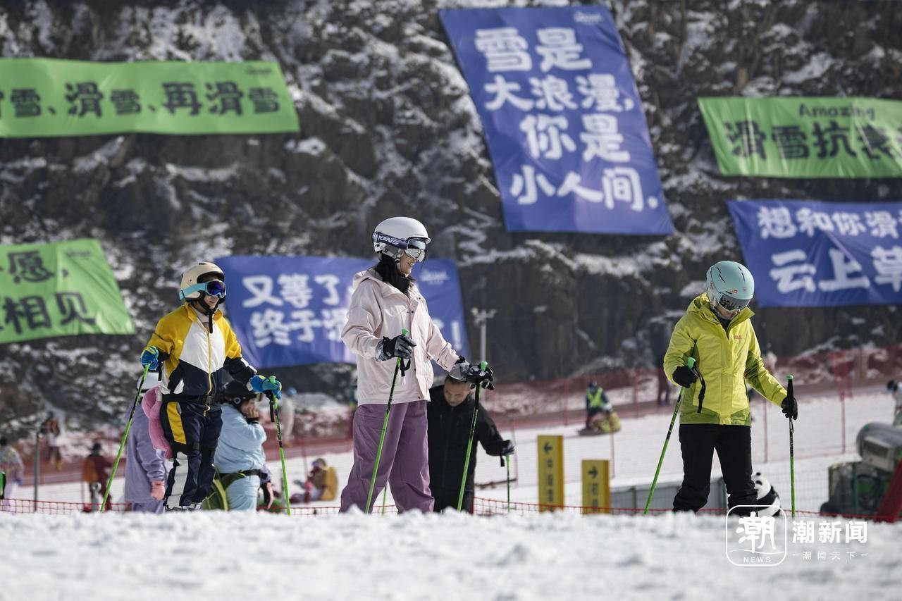 上坡、速降、过弯……有人步履轻盈,有人蹒跚学步,山间的滑雪场上,五彩服装映衬皑皑白雪。