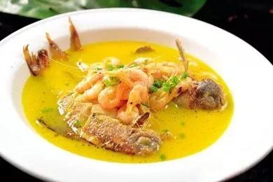 3、锅内放入色拉油30克,烧至五成热时,放入黄灯笼辣椒酱15克炒香,下入白菜,大火煸炒3分钟,下入高汤400克烧开,放入盐8克、鸡粉5克、小鲳鱼、白米虾,大火烧2分钟,出锅后先将白菜垫入容器内,再放入鲳鱼、虾,倒入汤汁,撒葱花3克上菜。