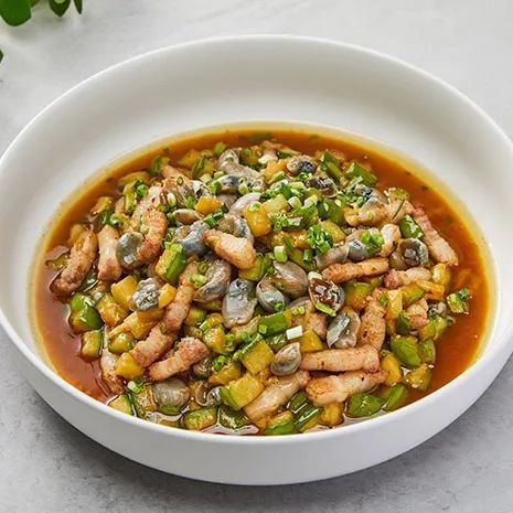 3. 出锅前入泥螺拌匀,装盘撒葱花即可。