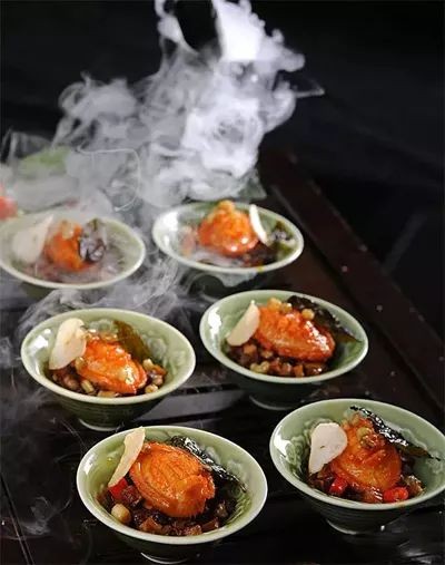 1、把鲜鲍仔宰杀治净,在肉面剞上花刀纳碗,加姜片、葱节、盐和料酒码味后,再入七成热的油锅,爆熟便倒出来沥油。|水手美食|干麦仁用清水泡涨以后,纳盆加二汤和少许的盐,入笼蒸熟便取出。另把杏鲍菇丁、冬笋丁投入油锅,炸香便捞出。