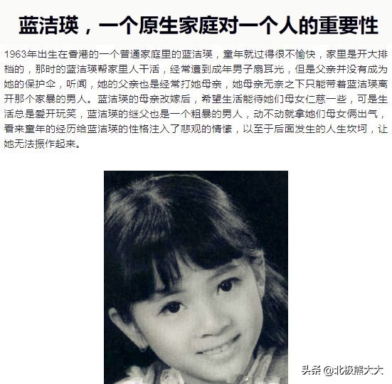 其实蓝洁瑛的童年生活并不像官方渲染得那样幸福,她的家庭情况很复杂,也很特殊。