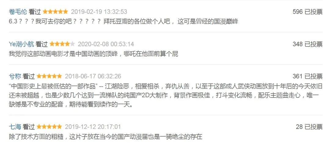 有网友评价说这是“中国影史上最被低估的一部(动画)作品”,也是“曾经的国漫巅峰”。
