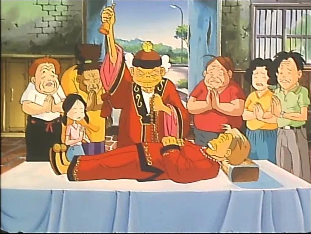虽说是一部儿童片,影片却事无巨细的呈现了闽南人各种神秘风俗,且向观众“科普”了盂兰盆节活动的整个过程。