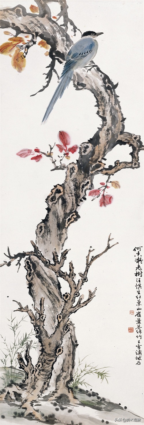 何香凝、汪慎生、叶恭绰、王雪涛 枫鸟 纸本设色 104×34厘米 无年款 何香凝美术馆藏