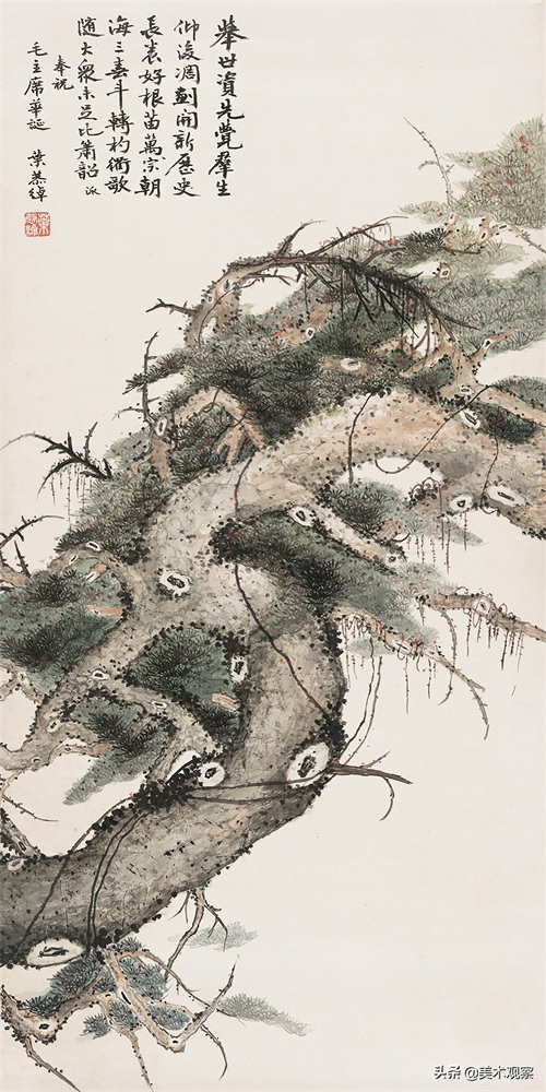叶恭绰 松柏图 纸本设色 94.7×45.9厘米 无年款 故宫博物院藏