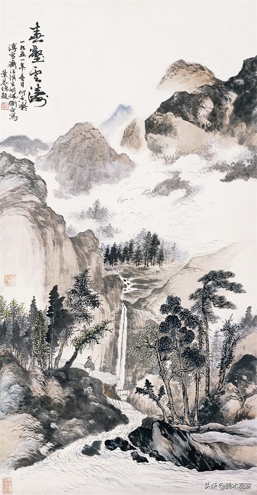 何香凝、溥雪斋、汪慎生、胡佩衡、叶恭绰 春壑云涛 纸本设色 131×67厘米 1951 何香凝美术馆藏