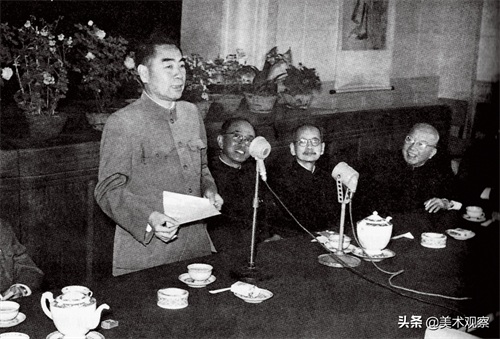1957年5月14日,周恩来在北京中国画院成立大会上讲话,右二为叶恭绰