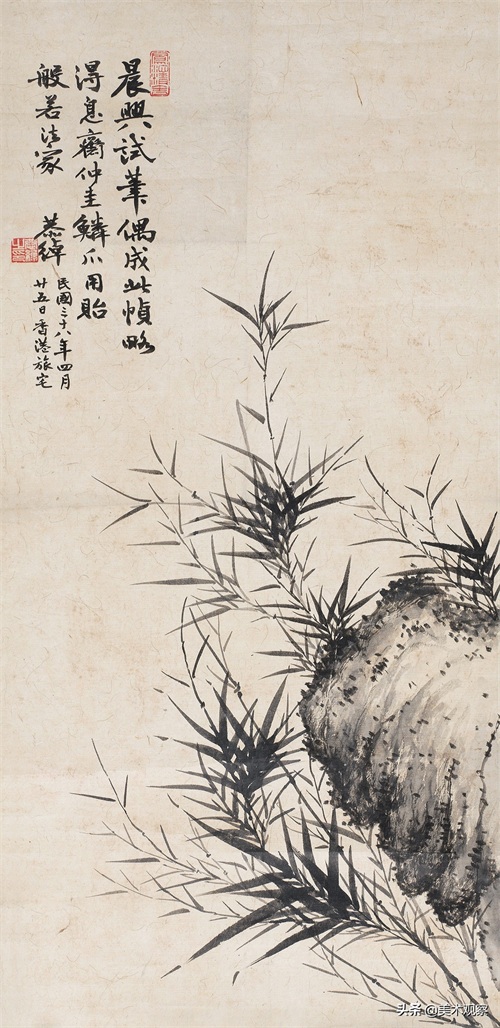 叶恭绰 竹石图 纸本水墨 79.5×37厘米 1947 北京画院藏