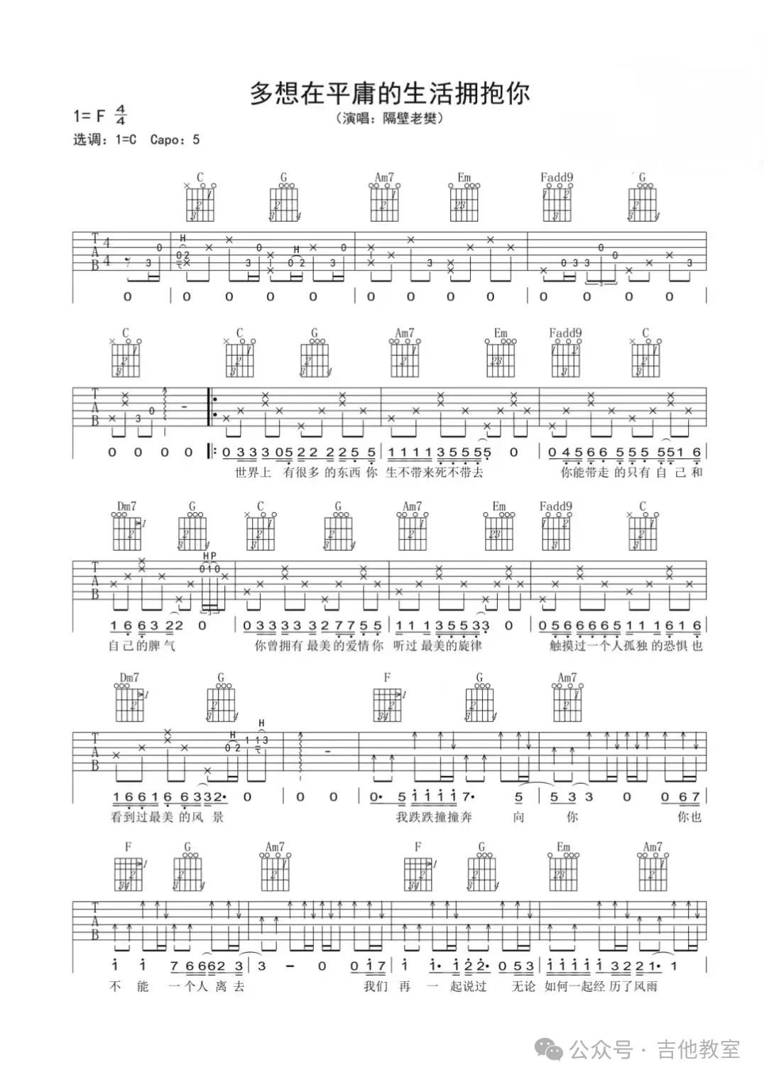 吉他谱《多想在平庸的生活拥抱你》- 隔壁老樊