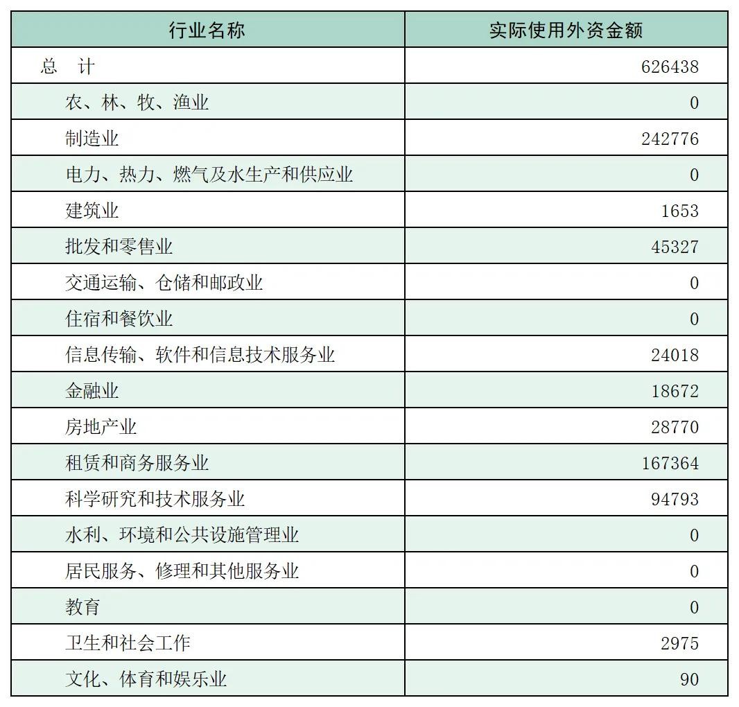 全年新批外商投资企业968个,比上年增长33.2%;实际使用外资金额62.64亿元,下降14.4%,其中制造业占38.8%,房地产业占4.6%,批发和零售业占7.2%。