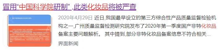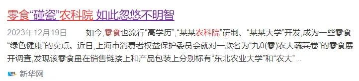 大量谎称是农科院研发的零食,冒用中科院名头的化妆品、减肥药等被曝光。