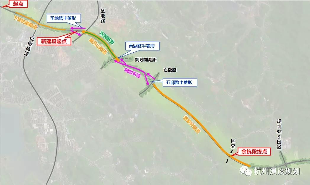 2021年12月,浙江省发展和改革委员会正式受理了浙江省交通运输厅、杭州市发展和改革委员会报送的《省交通运输厅关于报送320国道余杭华坞至富阳高桥段工程项目建议书的函》及《杭州市发改委关于上报320国道余杭华坞至富阳高桥段工程项目建议书的请示》,这意味着此项目正式立项,为后续工作顺利推进奠定基础。项目起点位于老余杭320国道(运溪路)与城南路交叉处,经余杭区余杭街道、中泰街道,富阳区银湖街道,终点位于富阳320国道与高桦线交叉口。项目路线全长约18.2公里(其中完全利用段2.2公里,实施里程16公里),其中余杭段长约8.7公里(其中完全利用段2.2公里,实施里程6.5公里),富阳段长约9.5公里。全线共设置互通式立体交叉5处,隧道养护站1处。
