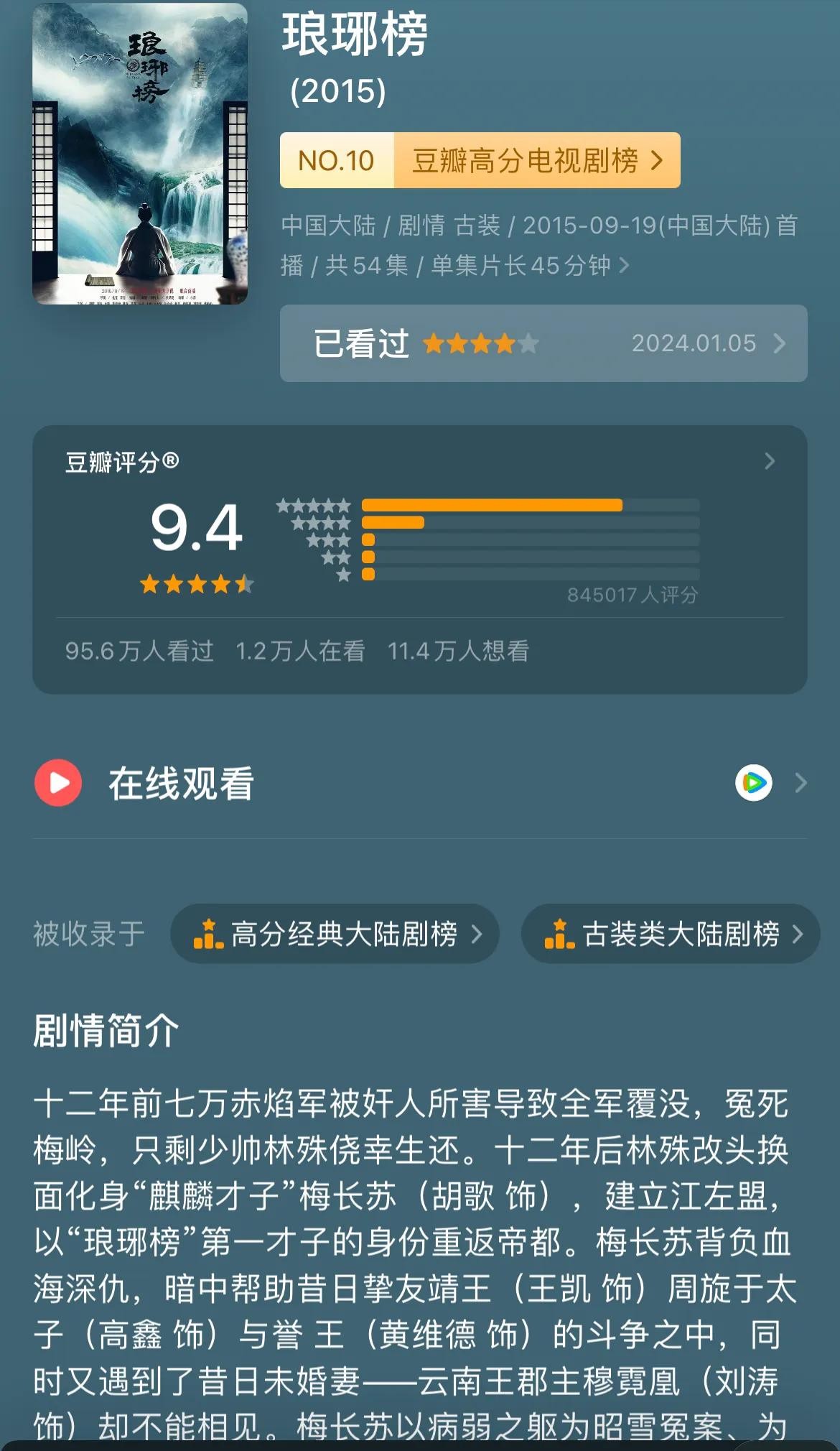 推荐指数:⭐⭐⭐⭐⭐(建议《琅琊榜2》也一起看,梅长苏与萧庭生都是可怜又可敬之人,力荐)