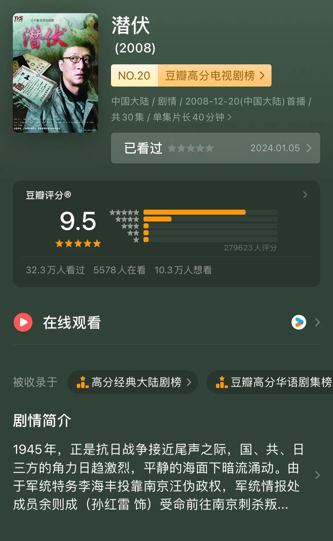 推荐指数:⭐⭐⭐⭐⭐(喜欢谍战剧的可以放心入手)