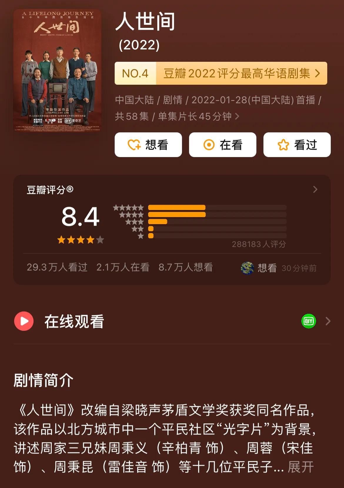 年代或历史剧《大宅门》、《山海情》、《人世间》、《觉醒年代》