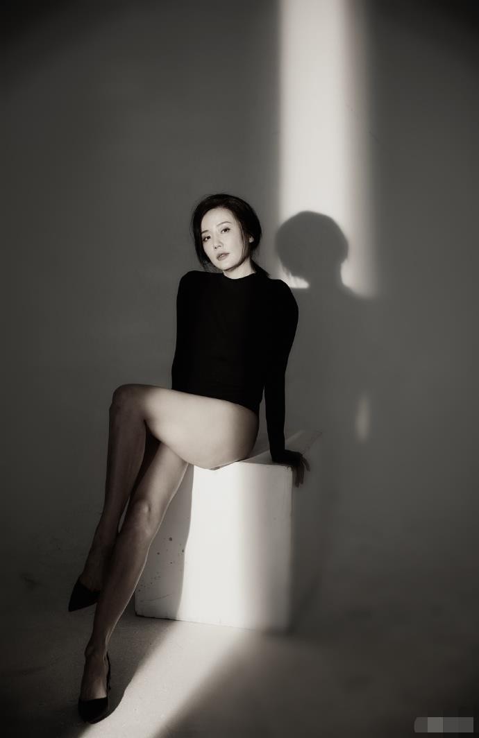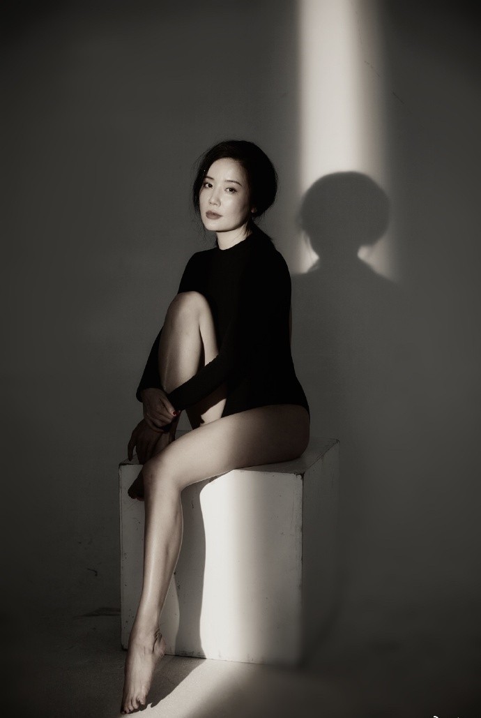 照片中的张彤坐在白色的方形石膏上凹造型,摆手弄姿十分撩人,黑白的光线让肌肤更加白皙,又性感又有艺术氛围。