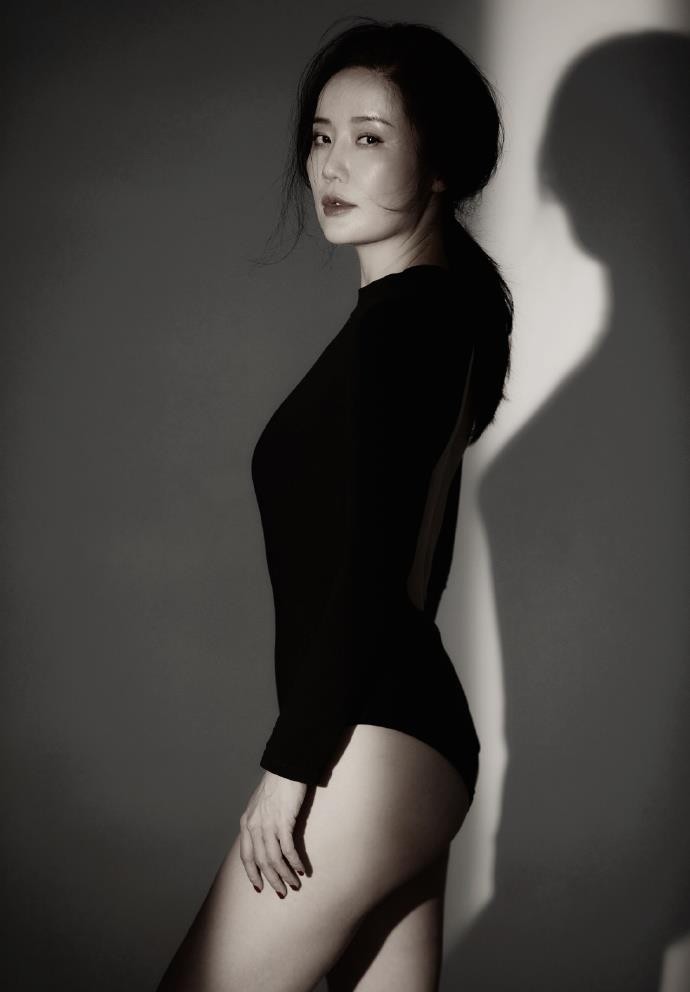 42岁张彤晒性感写真,黑色连体衣秀魔鬼身形,小蛮腰同龄人少见
