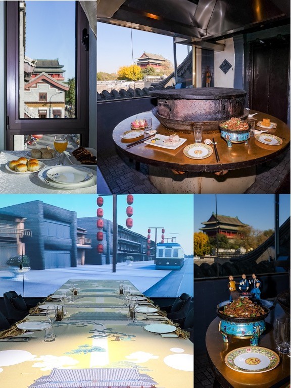 在全聚德前门店的“品·味”光影主题餐厅里,通过全景式影像,让食客充分领略北京中轴线文化和京味饮食文化,沉浸在文化与美食碰撞的视觉盛宴中。