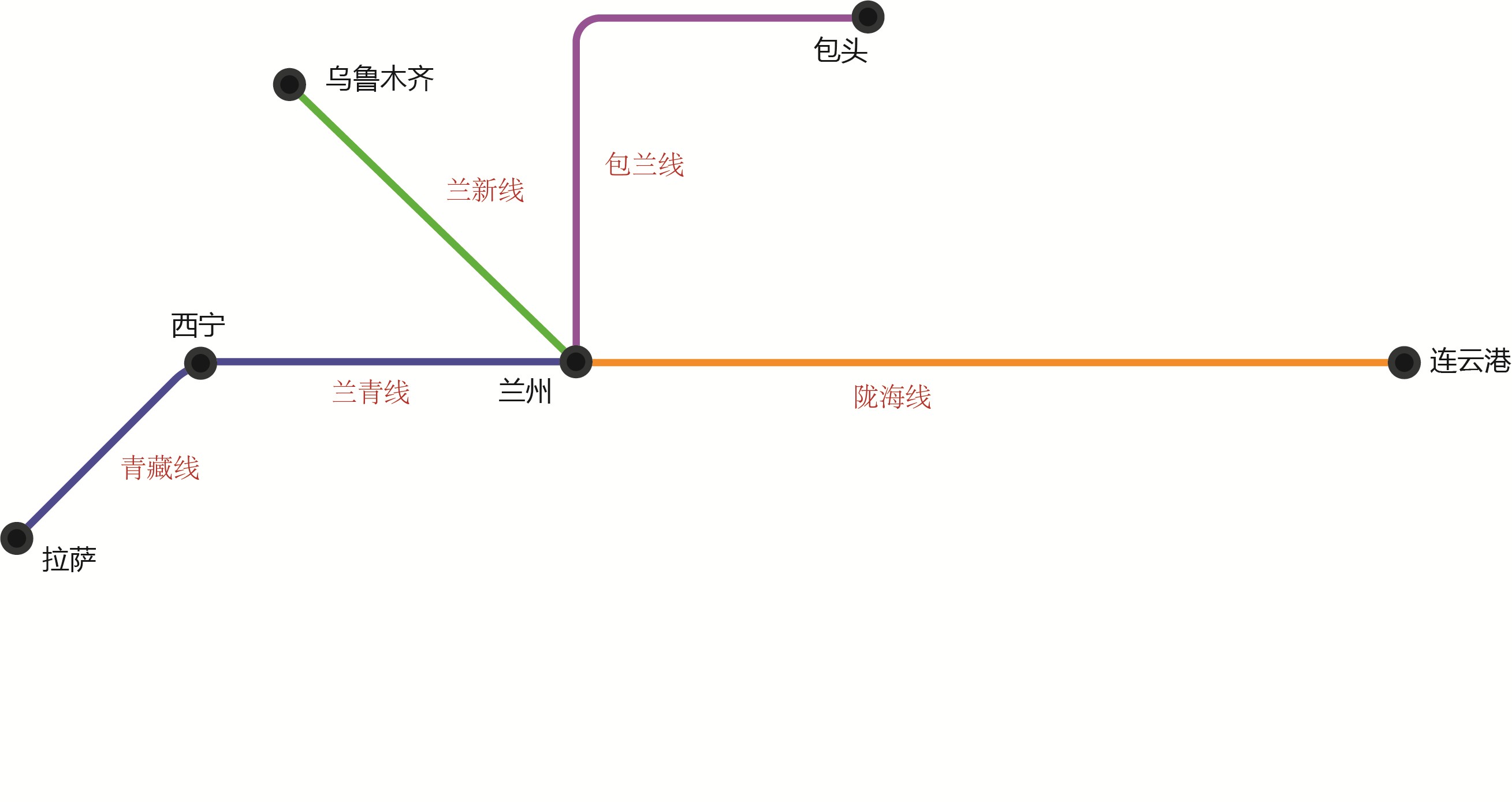 连接兰州的铁路干线有兰青线、兰新线、陇海线、包兰线