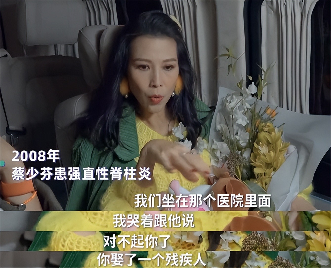 除了原生家庭的心酸之外,蔡少芬在2008年的时候还确诊了强直性脊柱炎。患病后弯腰都弯不了、躺下也躺不了、甚至连吐气都成了困难!这么多年过去了,她很少会在镜头前谈论自己的病情,因为她不想让大家看到自己脆弱的一面。