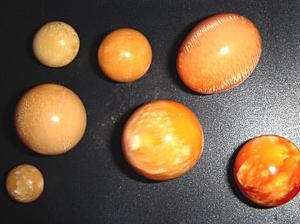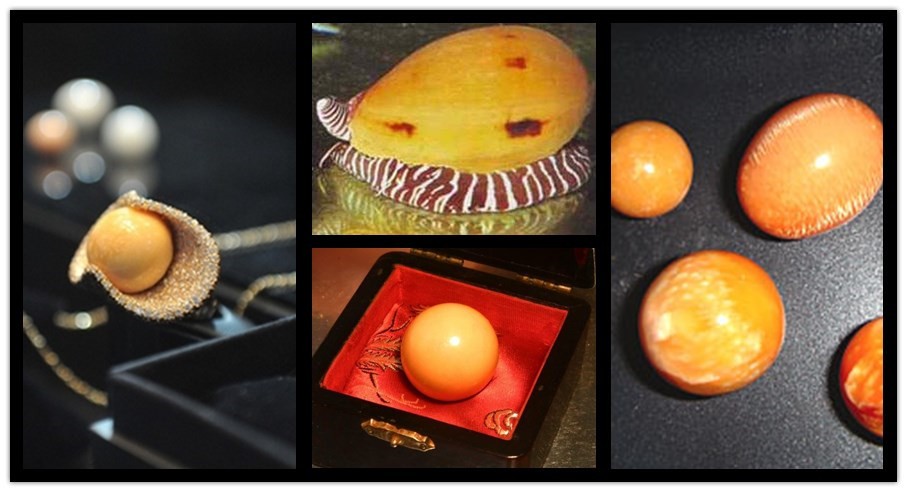 美乐珠是一种没有珍珠层状结构的珍珠,其成分和多数贝壳类相似,包含方解石及霰石微晶集合体,颜色有橘红、橘黄、黄、黄褐到近白色,在美乐珠的颜色系列中.以类似于成熟木瓜的强橙色调最为珍贵。具有陶瓷的晶亮外观,也被称做瓷状光泽。其内部具有如云似焰的特殊火焰纹路构造,形状从不规则形、椭圆到蛋形都有,圆形者价值通常较高。其直径大小从几mm到30mm左右,巨大者可超过200克拉。