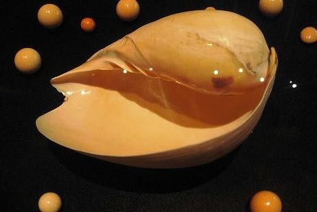 美乐海螺属于涡螺科腹族纲家族,是具有黄色或黄黑相间斑点的椰子涡螺,或称木瓜螺,是产于缅甸、泰国、越南等东南亚及印度洋太平洋海域的单壳软件动物。稀有珍贵的美乐珠出产极其不易,从海螺中能找到的几率是几千分之一,能够完整开采到尺寸较大、质量优良的几率更低。
