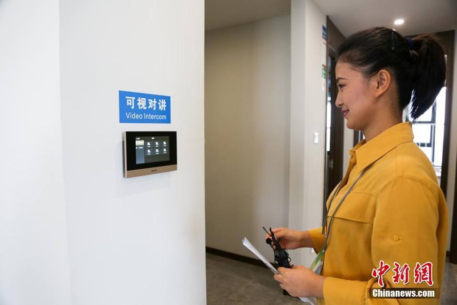 图为武汉军运村公寓内的可视对讲系统。(图片来源:中新网)