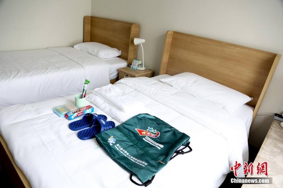 武汉军运村位于武汉市江夏区黄家湖东南岸,总占地面积848.7亩,共30栋住宅1958套公寓,将迎接近万名运动员、教练及随行官员入住。图为武汉军运村运动员公寓内景。(图片来源:中新网)