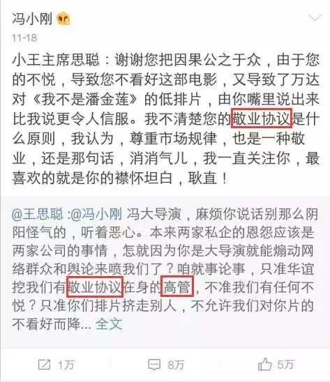 冯小刚和王思聪开炮对轰,原因竟是一纸协议