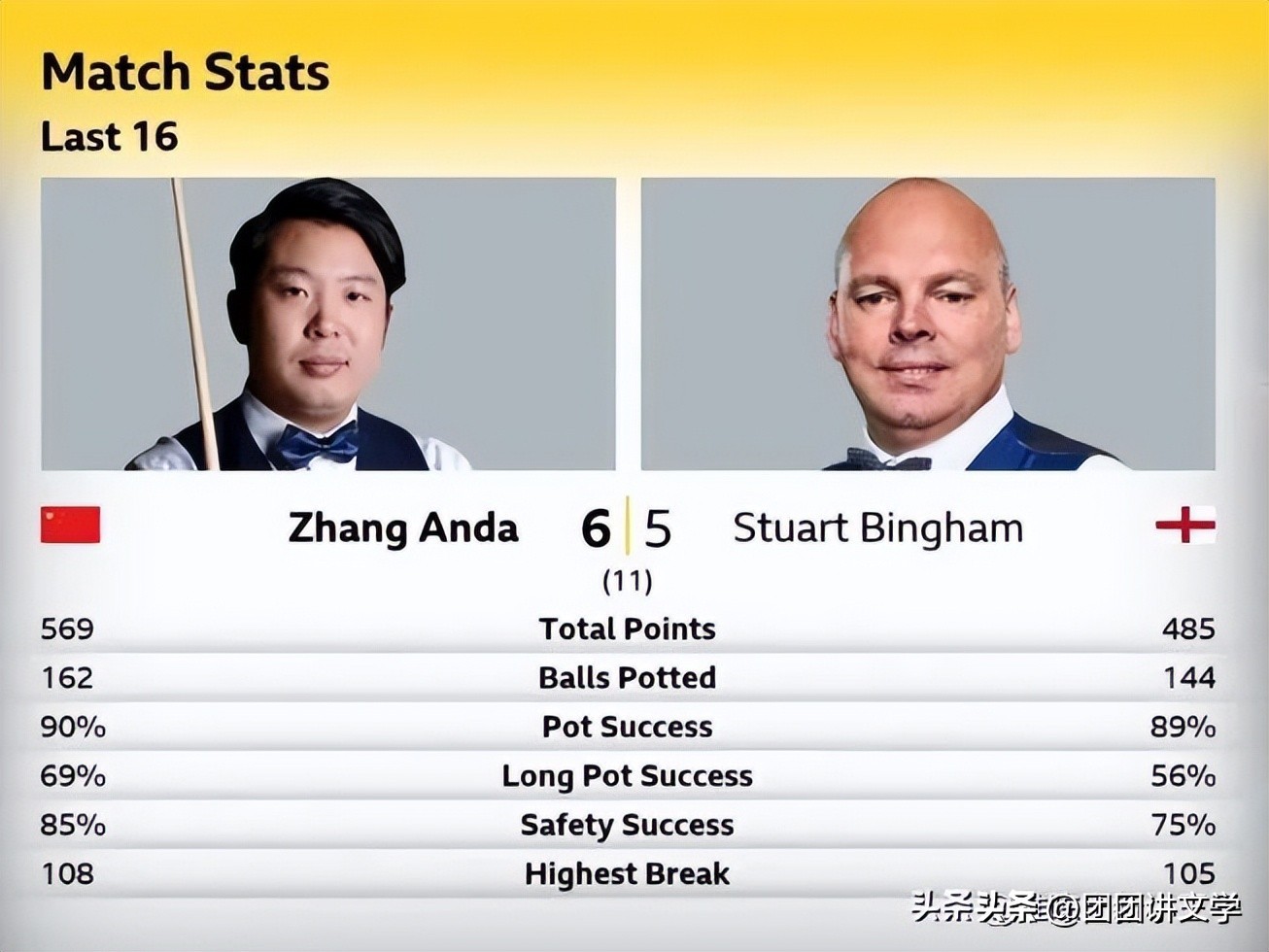 在1/8决赛中,张安达面对的是曾获世锦赛冠军的斯图尔特·宾汉姆,与众多想要救赎的选手一样,宾汉姆同样渴望在高压之下证明自己,而在早期的比赛中,张安达的状态可谓起伏不定,曾经在无数次的磨练中感受过失败的苦涩,但这一切似乎在与宾汉姆的对抗中得到洗礼,篮球场上的强者,他们未必总能一帆风顺,而张安达,无疑是一位敢于挑战不可能的勇者