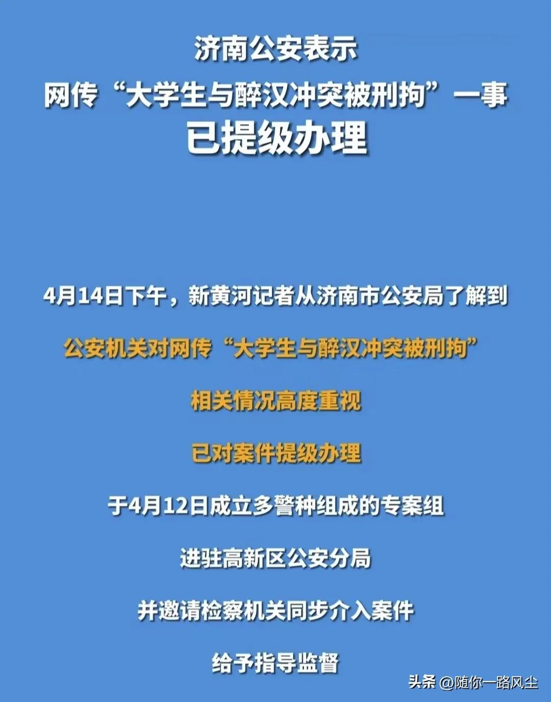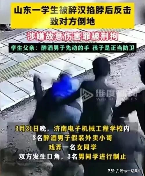 #“学生与醉汉冲突被刑拘”案提级办理##律师:男生反击醉汉是正当防卫##济南一大学生被醉汉掐脖 反击后涉故意伤人被刑拘#
