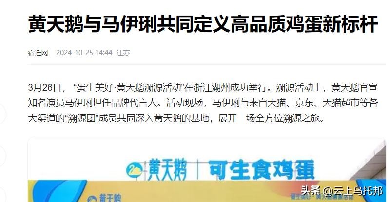 信息来源:宿迁网2024-10-25黄天鹅与马伊琍共同定义高品质鸡蛋新标杆