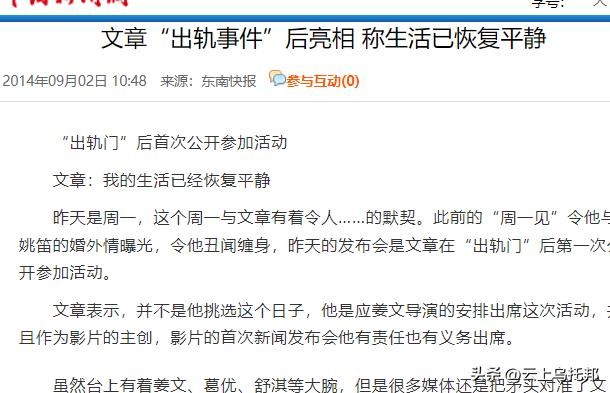 信息来源:东南快报2014年09月02日文章“出轨事件”后亮相 称生活已恢复平静