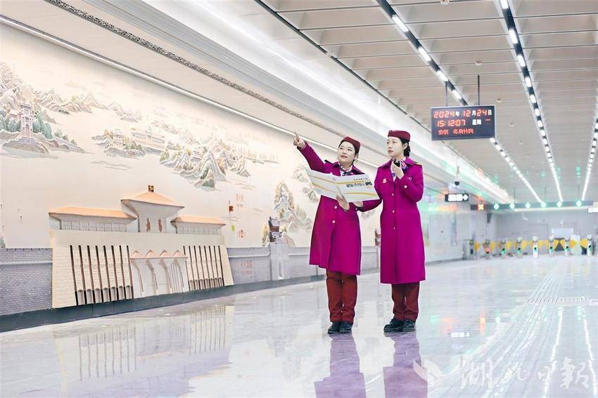 11号线武昌站东广场站内,文化墙凝聚武昌古城文化元素。(通讯员 产启斗 摄)