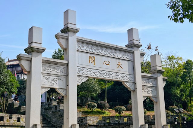 位于长沙市中心东南角天心公园内的天心阁,是长沙古城的一座城楼,也是长沙的古城标志,周边的城墙,是长沙仅存的一段古城墙遗址。天心阁始建于清乾隆十一年(1746年),由当时的抚军杨锡被主持兴建。如今游客看到的天心阁,是1983年重建的。天心阁整体建筑用四十六根红漆圆柱支撑,栗瓦粉墙,灰白色石基敦厚稳实,阁前、后的石栏杆上雕有62头石狮,阁体上挂着32只风马铜铃,迎风作响。在天心阁下的天心公园游玩时,还能看到一座牌楼——“崇烈门”,它建于1946年,当时是为了纪念在抗战时期长沙三次大会战中牺牲的国民党将士,由蒋介石、陈诚、张治中等带头捐款修建的。牌楼用全麻石打造,“崇烈门”三个字由蒋介石先生亲笔题写。