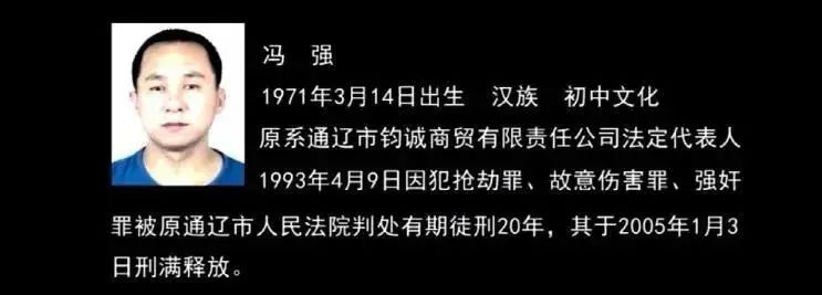 需要说明的是,冯强1993年4月9日因抢劫罪、故意伤害罪、强奸罪被判处有期徒刑20年,结果2005年1月3日就刑满释放了。