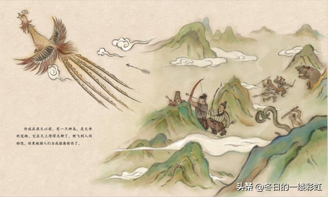 传说在几千年前,当时凶禽猛兽众多,经常伤害人和牲畜。于是人们就组织起来去抗击它们。有一天,天庭一只神鸟因困倦+迷路误落人间,结果被猎人射杀了。
